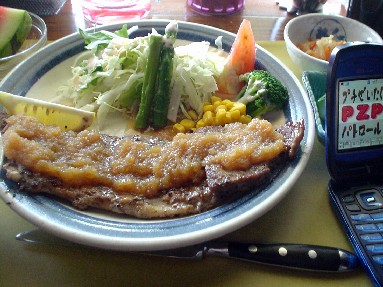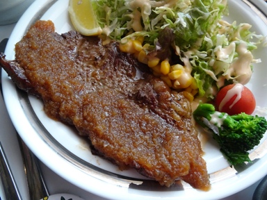 ビーフステーキ↑(900円)は良い肉を使っていた。チキンステーキ↑(700円)も合格点。両方とも頼むべき逸品。