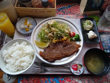 注文したのは、ステーキ定食↑(700円)です。なんと価格と味は当時のままで変更なし。この企業努力にはピックリ。