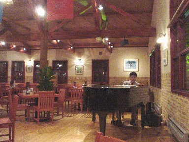 店内の音楽はピアノが演奏↑されていました。「男2人で来る場所じゃない」と思いながらも地ビールを注文しました。
