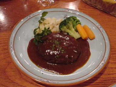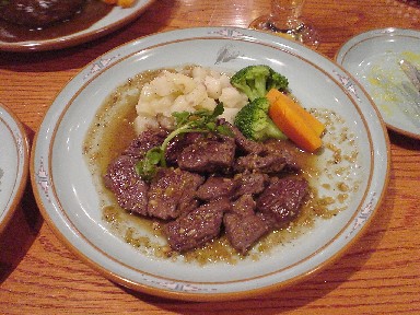 N君はハンバーグステーキセット↑(1050円)を注文しました。私は牛肉の角切りステーキセット(1240円)です。