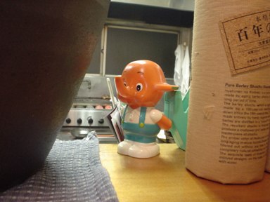 ちくぜん風五目焼き飯↑(530円)も和食なのに洋食っぽい味で良かった。カウンター上にサトちゃんがいました(謎)