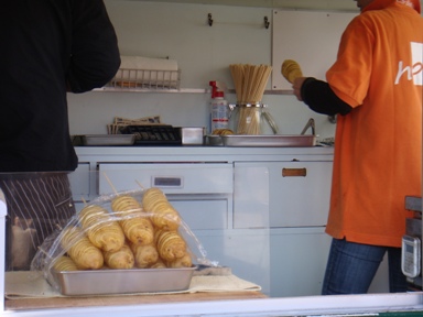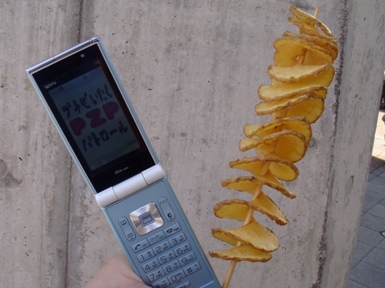 1本300円で味は3種類です。作り方は超簡単で渦巻き状にカットされたポテトを串にさし2分揚げれば完成です。