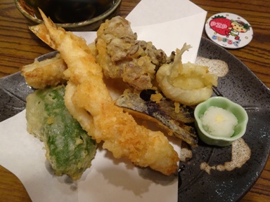 揚げたてでバリパリの天ぷら盛りの中に竹輪天があった。賛否ありそうですが私は蕎麦と竹輪天は相性良いと思う。