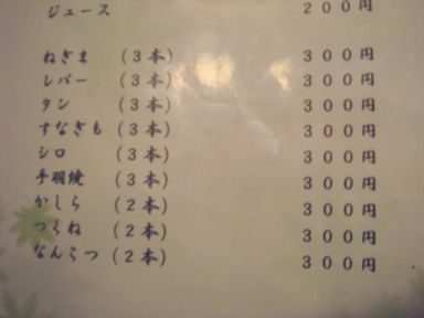 ねぎ間、レバー、タン、を塩味で各2本ずつ注文してみました。価格は1本100円です。やきとりの味は平均点でした。