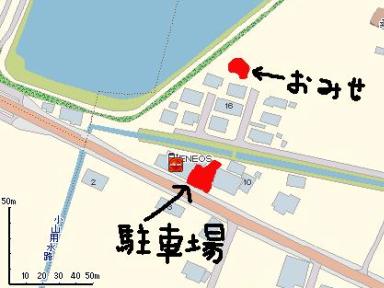 奥まで歩いて行くと蕎麦屋↑が現れます。説明がヘタなので簡単な地図を書いておきます。少しは参考になるかな?
