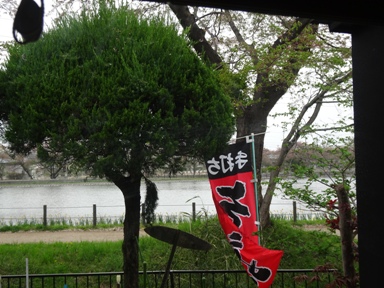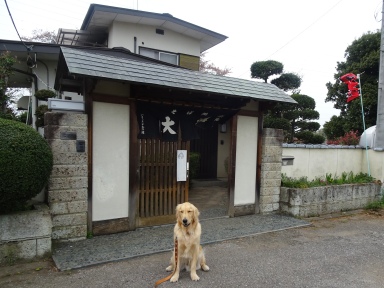 先回と同じように駐車場に車を停めて橋を渡って店の前に到着です。相棒(犬)は道案内に歩いたけだで入店不可。