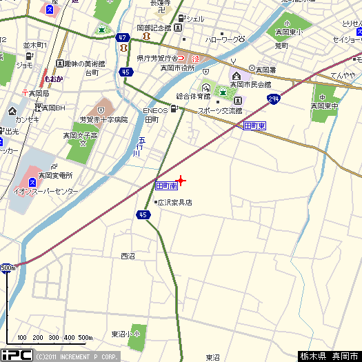 画像中心部の赤○が店です。畑の中の一軒家です。泣いても騒いでも外には声が聞こえません。しかも店の周囲は