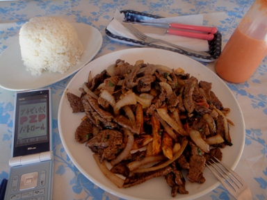 ペルーの御菓子や雑誌も売ってます。客もペルー人です。ロモサルダート↑(1000円)は肉醤油炒めです。旨い。