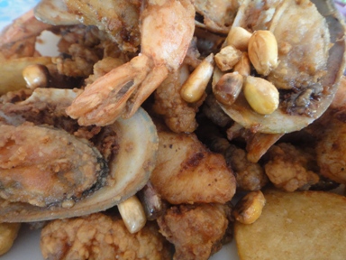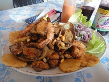 そしてハレア↑(1500円)はペルーの海産物フライです。特にエビ&イカが美味しい。香辛料が日本の物とは違う。