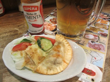 ミラネザ・デ・ポーリョ↑(450円)は日本で言えば、一口チキンカツです。タバスコをかけて頂きます。美味しかった。