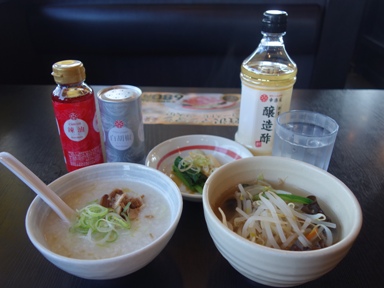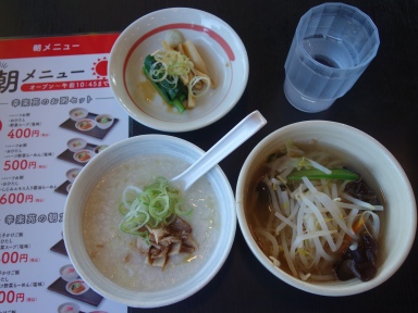 お粥セット↑(400円)を注文。普通のお粥だった。野菜スープはモヤシだった。この企画は続かない様な気がする。