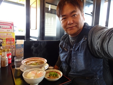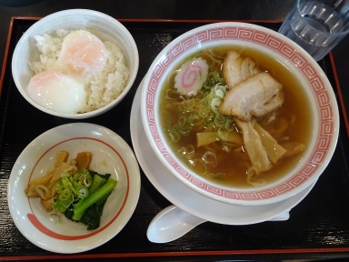 ハーフラーメンセット↑(600円)を注文。あさりラーメンを食べて朝から元気になりました。さあ、遊びに行こう!